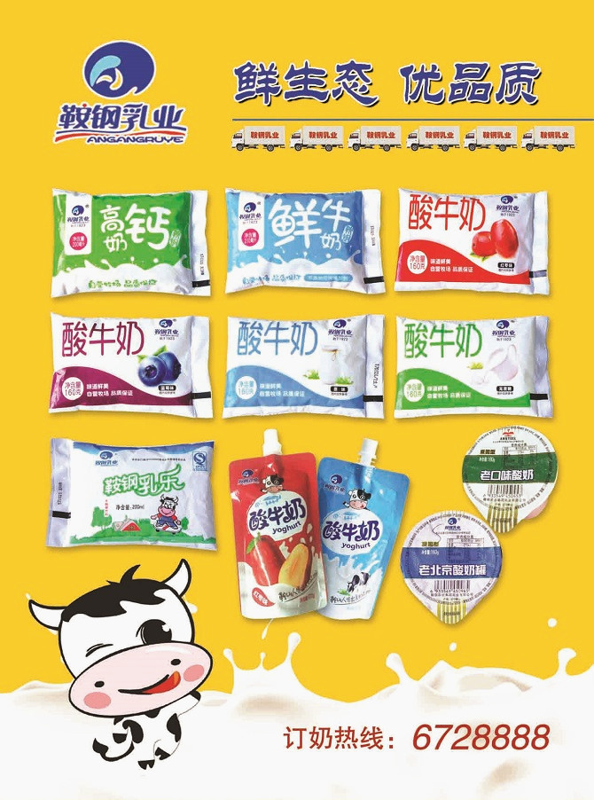 鞍鋼實業(yè)集團乳業(yè)有限公司集奶牛養(yǎng)殖、巴氏鮮奶和酸奶加工、低溫奶日配送為一體的綜合性乳品企業(yè),坐落在美麗的千山腳下,位于鞍山高新技術(shù)開發(fā)區(qū),占地面積16萬平方米,其中:奶牛養(yǎng)殖場12萬平方米,加工中心4萬平方米。 鞍鋼牛奶歷史悠久,奶牛養(yǎng)殖歷史可追溯到1923年。經(jīng)過近百年的變遷,從解放后的鞍鋼牧場、鞍鋼七嶺子牧場、鞍鋼副業(yè)總廠直至今天的鞍鋼乳業(yè),生產(chǎn)工藝、產(chǎn)品結(jié)構(gòu)和管理水平均發(fā)生了翻天覆地的變化。裝備更新,產(chǎn)品升級換代,銷售區(qū)域不斷拓展,市場占有率逐漸擴大,鮮牛奶銷量一直雄居鞍山同行業(yè)的龍頭地位。 鞍鋼乳業(yè)現(xiàn)擁有遼南最大的荷斯坦奶牛養(yǎng)殖基地和牛奶配送中心,養(yǎng)殖奶牛近千頭。加工中心擁有可進行全項自檢的化檢驗中心,以及自動化鮮奶生產(chǎn)線、酸奶生產(chǎn)線、桶裝水灌裝線和瓶裝水生產(chǎn)線。生產(chǎn)巴氏鮮牛奶、原味酸奶、高鈣奶、優(yōu)樂乳、木糖醇酸奶、紅棗酸奶、炭燒酸奶、酸奶罐、草莓酸奶、芒果酸奶、包裝飲用水等20多種產(chǎn)品。 多年來,鞍鋼乳業(yè)屢獲殊榮:從1999年開始鮮牛奶產(chǎn)品連續(xù)被鞍山市政府命名為“放心奶”,是鞍山乳品行業(yè)中唯一被消費者協(xié)會推薦的品牌產(chǎn)品,乳業(yè)公司被遼寧省質(zhì)量管理協(xié)會命名為“遼寧省用戶滿意服務(wù)單位”,并成為中國人民財產(chǎn)保險股份有限公司承保企業(yè)。2002年通過了ISO9001:2000質(zhì)量管理體系認證,2005年通過了國家“QS”認證,成為鞍山市首批取得食品質(zhì)量安全市場準入資格的四家企業(yè)之一。2006年被評為“鞍山名牌產(chǎn)品”,連續(xù)20年獲省“重合同,守信用”單位。2009年通過HACCP體系認證審核。2019年被遼寧省奶業(yè)協(xié)會授予改革開放四十年來優(yōu)秀乳品加工企業(yè)。