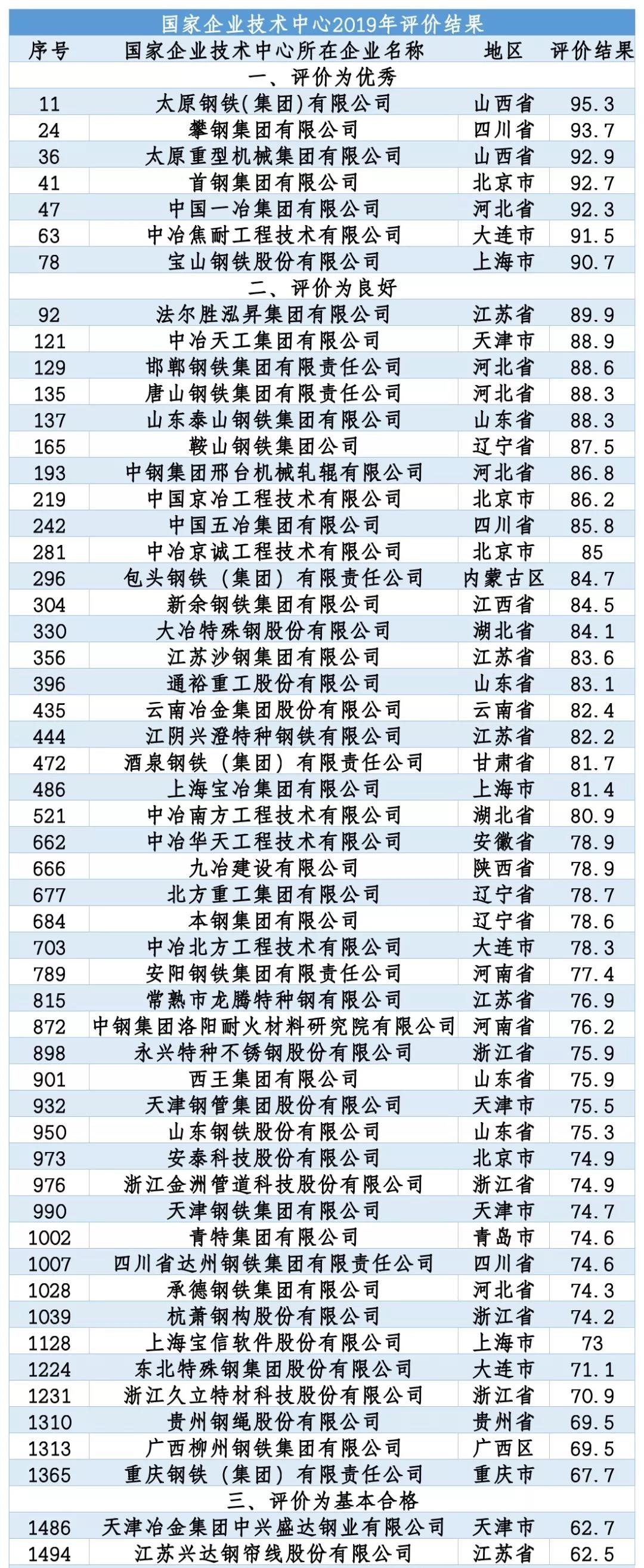 近日,國(guó)家發(fā)改委公布了全國(guó)1563家國(guó)家企業(yè)技術(shù)中心2019年評(píng)價(jià)結(jié)果。在鋼鐵行業(yè)中,共有7家企業(yè)被評(píng)為優(yōu)秀,攀鋼集團(tuán)有限公司以93.7分的成績(jī)位列鋼企第二,全國(guó)排名第24位。