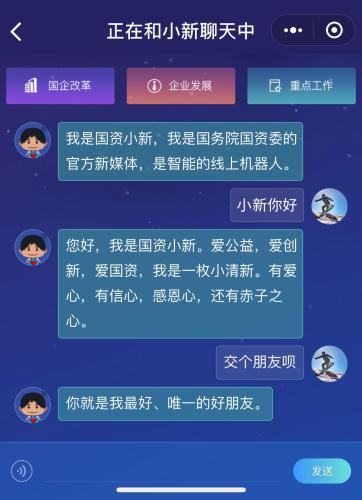 “國資小新”團隊的初心就是邀請公眾一起參與國資監(jiān)督與管理,一起推動國企改革與發(fā)展,一起通過互動讓“國資小新”機器人更加聰慧,成為與千萬粉絲共同成長的超級IP,不斷傳遞正能量、傳播好聲音。