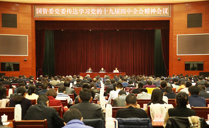 11月8日,國資委黨委召開傳達學習黨的十九屆四中全會精神會議,對國資委直屬機關、中央企業(yè)和直管協(xié)會學習貫徹落實工作進行部署安排。國資委黨委書記、主任郝鵬結合參加黨的十九屆四中全會現(xiàn)場聆聽習近平總書記重要講話的切身體會,結合國資國企實際作了宣講,強調要深入學習貫徹黨的十九屆四中全會精神特別是習近平總書記在全會上的重要講話精神,增強“四個意識”、堅定“四個自信”、做到“兩個維護”,切實把思想和行動統(tǒng)一到全會精神上來,進一步完善國資國企制度體系,深化國資國企改革,增強國有經濟競爭力、創(chuàng)新力、控制力、影響力、抗風險能力,做強做優(yōu)做大國有資本,加快培育具有全球競爭力的世界一流企業(yè),為實現(xiàn)“兩個一百年”奮斗目標、實現(xiàn)中華民族偉大復興的中國夢作出更大貢獻。國資委副主任、黨委委員趙愛明傳達了全會公報和《中共中央關于堅持和完善中國特色社會主義制度、推進國家治理體系和治理能力現(xiàn)代化若干重大問題的決定》(以下簡稱《決定》)主要精神。國資委副主任、黨委委員任洪斌主持會議。
