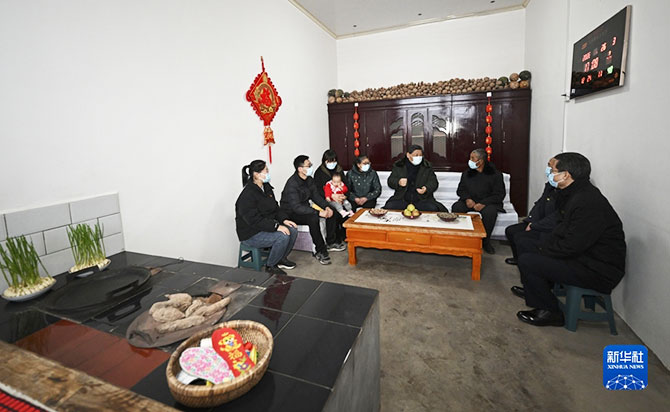 師紅兵家4間窯洞去年因強(qiáng)降雨全部倒塌,在政府補(bǔ)助和各方援助下重建了2間裝配式住房,目前全家已經(jīng)入住。習(xí)近平仔細(xì)察看院落、住房??吹綆熂t兵一家正在做年饃,習(xí)近平加入進(jìn)來(lái),捏了一個(gè)棗花,并為面團(tuán)點(diǎn)上紅棗。歡聲笑語(yǔ)中,一個(gè)個(gè)年饃制作出來(lái),格外喜慶。