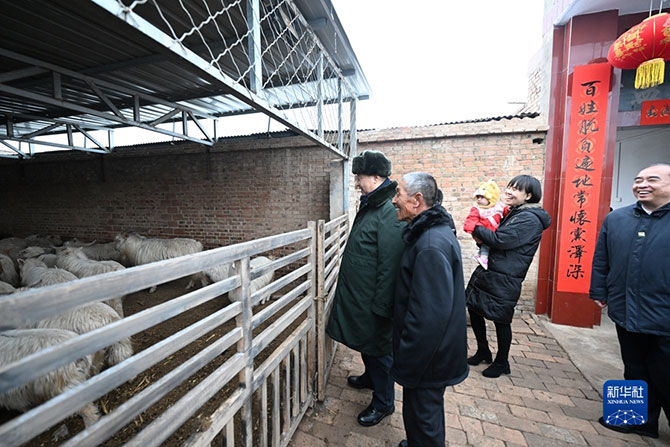 隨后,習(xí)近平乘車來(lái)到汾西縣僧念鎮(zhèn)段村,考察當(dāng)?shù)仂柟掏卣姑撠毠?jiān)成果、接續(xù)推進(jìn)鄉(xiāng)村振興、加強(qiáng)基層黨建等情況。在便民服務(wù)中心,村干部向習(xí)近平介紹了他們開展為民服務(wù)、提升基層治理水平、防止返貧動(dòng)態(tài)監(jiān)測(cè)和幫扶等做法。在村民蔡文明家中,習(xí)近平一一察看廚房、臥室和羊圈,詳細(xì)詢問(wèn)家庭收入多少、生活怎么樣。聽說(shuō)一家人2016年底脫貧后,如今靠養(yǎng)羊、外出務(wù)工日子越過(guò)越紅火,習(xí)近平十分高興。他指出,讓人民群眾過(guò)上幸福生活,是我們黨百年來(lái)的執(zhí)著追求,我們要不忘初心、牢記使命,一代接著一代干。