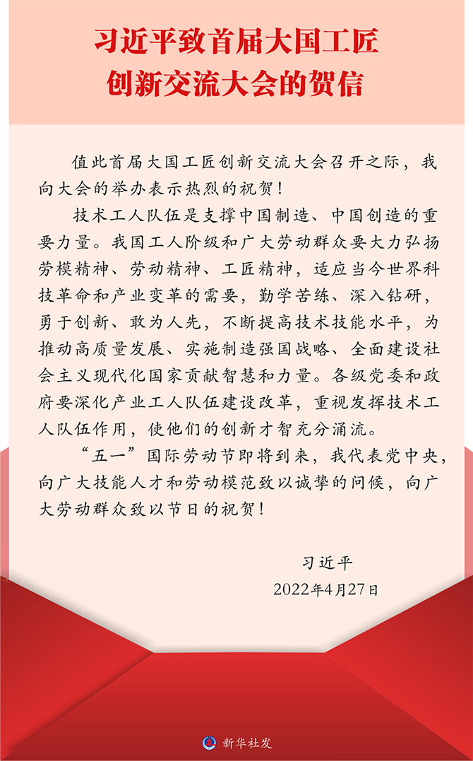 習(xí)近平在賀信中強調(diào),技術(shù)工人隊伍是支撐中國制造、中國創(chuàng)造的重要力量。我國工人階級和廣大勞動群眾要大力弘揚勞模精神、勞動精神、工匠精神,適應(yīng)當(dāng)今世界科技革命和產(chǎn)業(yè)變革的需要,勤學(xué)苦練、深入鉆研,勇于創(chuàng)新、敢為人先,不斷提高技術(shù)技能水平,為推動高質(zhì)量發(fā)展、實施制造強國戰(zhàn)略、全面建設(shè)社會主義現(xiàn)代化國家貢獻智慧和力量。各級黨委和政府要深化產(chǎn)業(yè)工人隊伍建設(shè)改革,重視發(fā)揮技術(shù)工人隊伍作用,使他們的創(chuàng)新才智充分涌流。