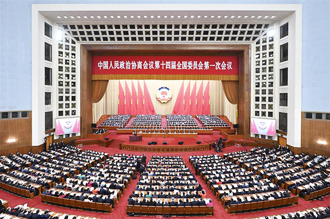 3月4日,中國(guó)人民政治協(xié)商會(huì)議第十四屆全國(guó)委員會(huì)第一次會(huì)議在北京人民大會(huì)堂開幕。 新華社記者 翟健嵐 攝