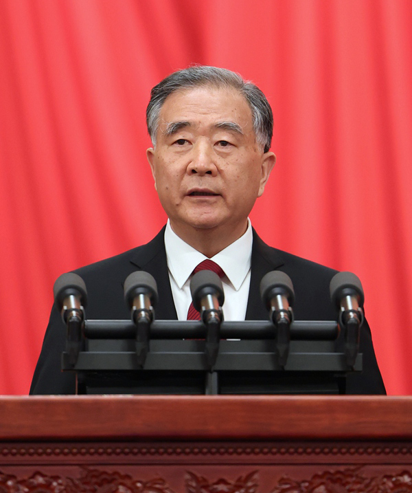 下午3時(shí),王滬寧宣布大會(huì)開幕,全體起立,高唱中華人民共和國(guó)國(guó)歌。