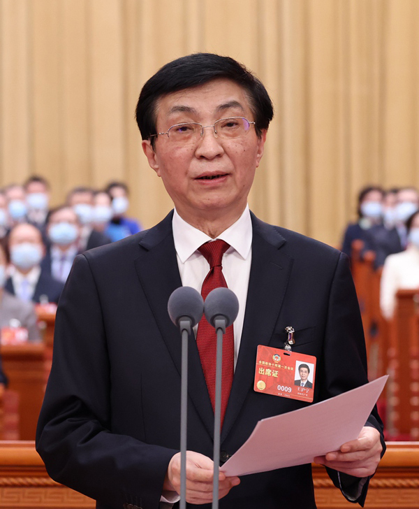 3月4日,中國(guó)人民政治協(xié)商會(huì)議第十四屆全國(guó)委員會(huì)第一次會(huì)議在北京人民大會(huì)堂開幕。王滬寧主持開幕會(huì)。 新華社記者 黃敬文 攝