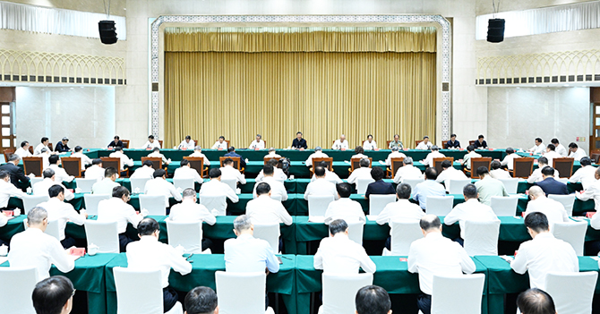 中共中央政治局常委、中央辦公廳主任蔡奇出席匯報會。