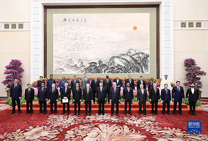 阿根廷總統(tǒng)費(fèi)爾南德斯,智利總統(tǒng)博里奇,剛果共和國總統(tǒng)薩蘇,印度尼西亞總統(tǒng)佐科,哈薩克斯坦總統(tǒng)托卡耶夫,肯尼亞總統(tǒng)魯托,老撾國家主席通倫,蒙古國總統(tǒng)呼日勒蘇赫,俄羅斯總統(tǒng)普京,塞爾維亞總統(tǒng)武契奇,斯里蘭卡總統(tǒng)維克拉馬辛哈,土庫曼斯坦民族領(lǐng)袖、人民委員會(huì)主席別爾德穆哈梅多夫,烏茲別克斯坦總統(tǒng)米爾濟(jì)約耶夫,越南國家主席武文賞,柬埔寨首相洪瑪奈,埃及總理馬德布利,埃塞俄比亞總理阿比,匈牙利總理歐爾班,莫桑比克總理馬萊阿內(nèi),巴基斯坦總理卡卡爾,巴布亞新幾內(nèi)亞總理馬拉佩,泰國總理賽塔,尼日利亞副總統(tǒng)謝蒂馬,阿聯(lián)酋總統(tǒng)特別代表、哈伊馬角酋長國酋長卡西米,法國總統(tǒng)特別代表、前總理拉法蘭,希臘總理高級(jí)代表、發(fā)展部部長斯克雷卡斯等20多國國家元首、政府首腦、高級(jí)代表,以及聯(lián)合國秘書長古特雷斯、新開發(fā)銀行行長羅塞夫等國際組織負(fù)責(zé)人出席開幕式。