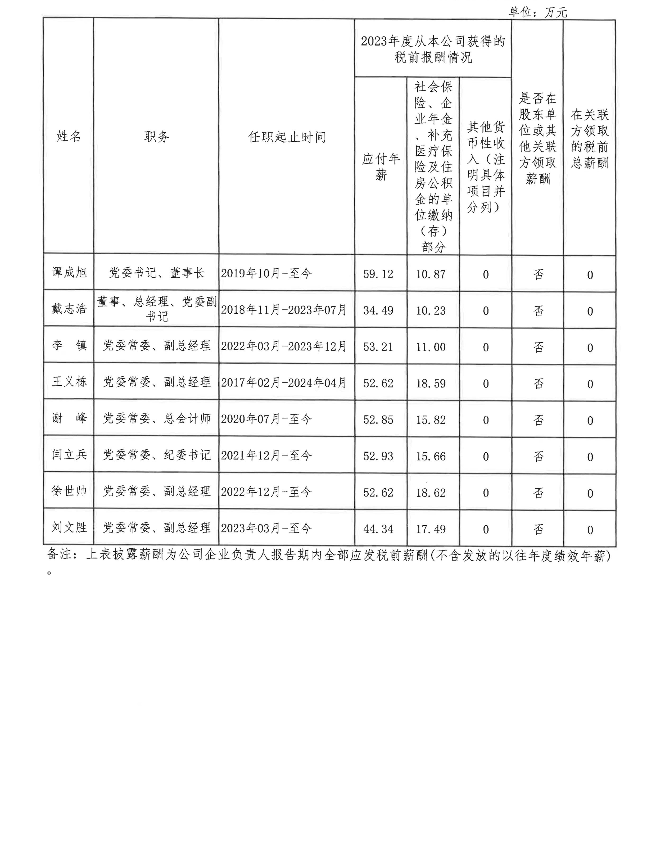 鞍鋼集團(tuán)有限公司企業(yè)負(fù)責(zé)人2023年度薪酬情況